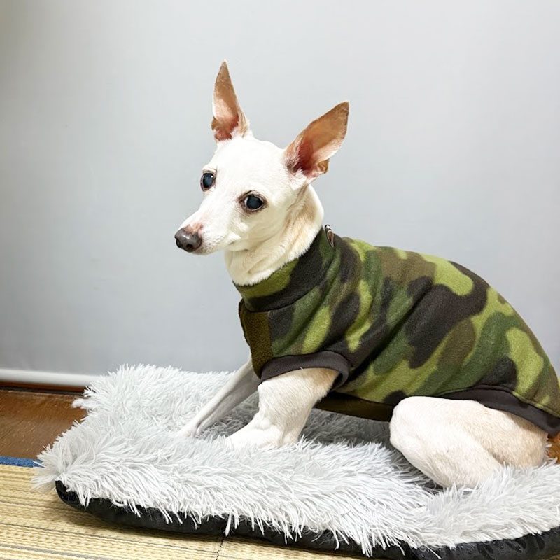 人気のノースリーブフリース服、迷彩柄で作りました。