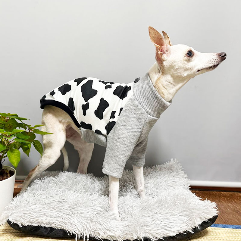 牛柄(ダルメシアン)は、目が詰まった厚手のポリニット(スポーツニット)ですので